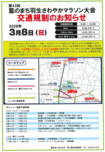 2026年3月8日(日)開催、第43回藍のまち羽生さわやかマラソン大会当日の交通規制についてご案内いたします。